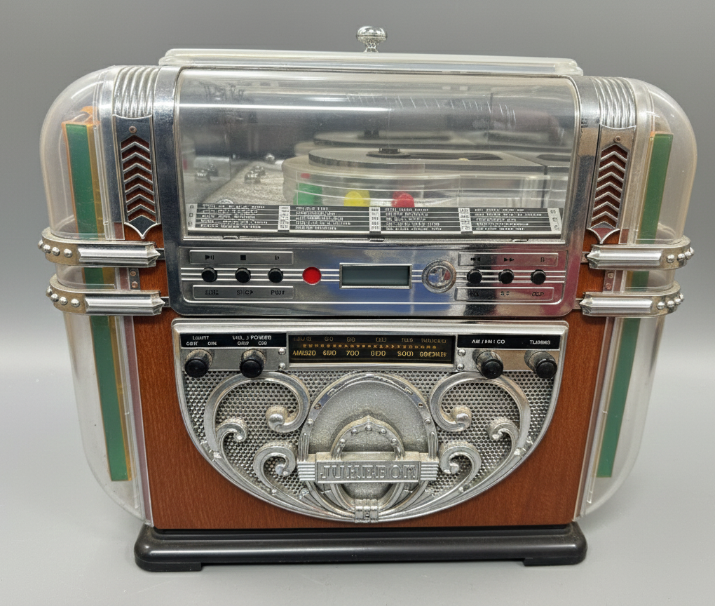 こちらは、1950年代のジュークボックスデザインをモチーフにした「マルチメディアプレーヤー」になります。レトロなデザインでありますが、現代の音楽ハードウェアに対応したインテリア性が高いオーディオ機器ですね。
